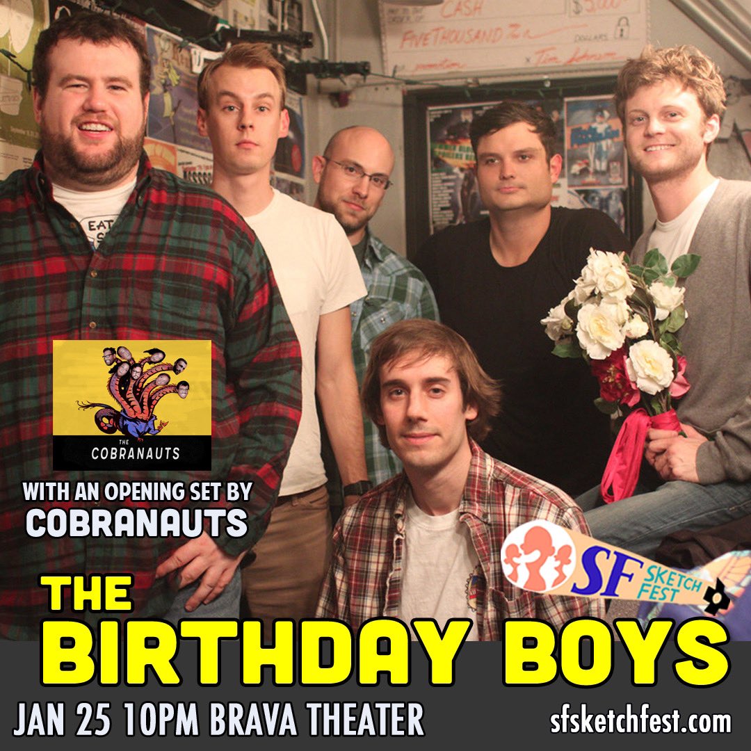 Tonight in San Francisco ALL YOUR FAVORITES ARE BACK! https://sfsketchfest2020.sched.com/event/XpxK/the-birthday-boys-cobranauts … pic.twitter.com/v9V6ntsdEs